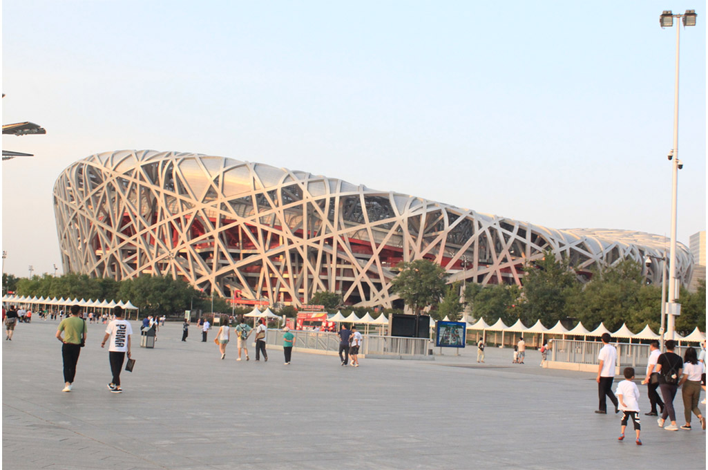 爬完長城,感受了歷史勞動人民的智慧后,我們又來到奧林匹克花園,充分見證了現代建筑的力量。橢圓形的鳥巢邊緣平滑,放形的水立方菱角分明,雄壯溫馨的鳥巢,優雅夢幻的水立方,緊密呼應,對比強烈,走近他們,仿佛還能感受到空氣中彌漫的奧運選手們揮灑的汗水的味道和觀眾們熱情的歡呼。